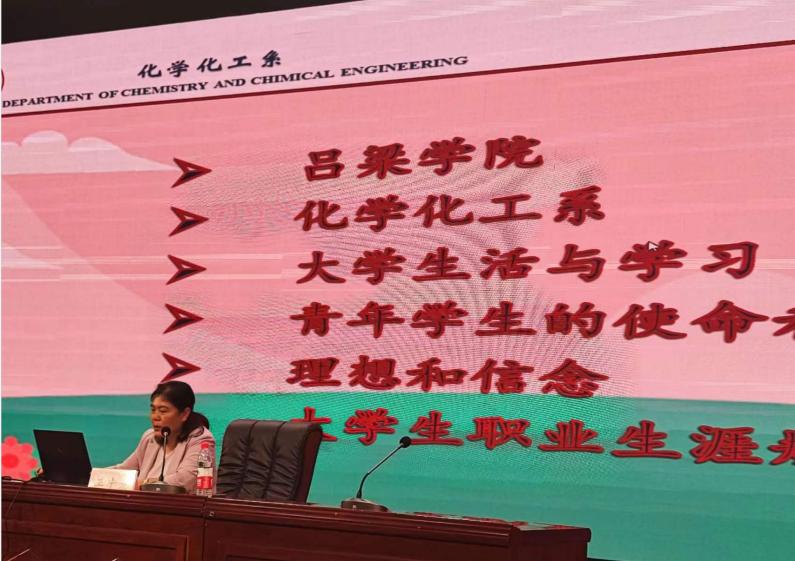 9月19日晚19时,化学化工系2023级新生入学教育在弘智楼报告厅举行,系领导班子、2023级新生班主任和辅导员出席,会议由系党总支书记薛文主持。