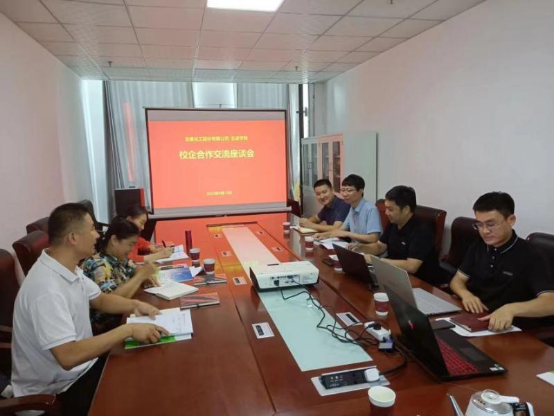 2023年9月12日下午,龙星化工副总乔习学、张伟明一行4人来到太阳集团,在弘智楼614会议室与化学化工系主任王中慧、招生就业处副处长张凤梅、化学化工系副主任于探来进行了校企合作座谈。