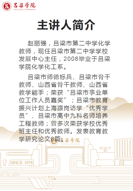 吕梁市第二中学教师赵丽强《化学教育的传承与展望》讲座通知