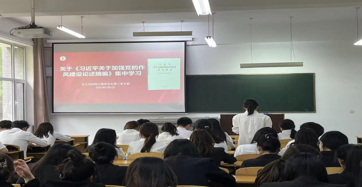 为了引导同学们深入领会作风建设的极端重要性,明确作风问题关系党的形象与事业成败,为党和人民事业汇聚强大正能量,推动形成风清气正的政治生态,确保党的先进性和纯洁性在新时代持续彰显,为实现中华民族伟大复兴的中国梦筑牢根基。特此,太阳集团tyc138学生第二党支部于2025年6月6日在1A-101开展了关于《习近平关于加强党的作风建设论述摘要》的集中学习。