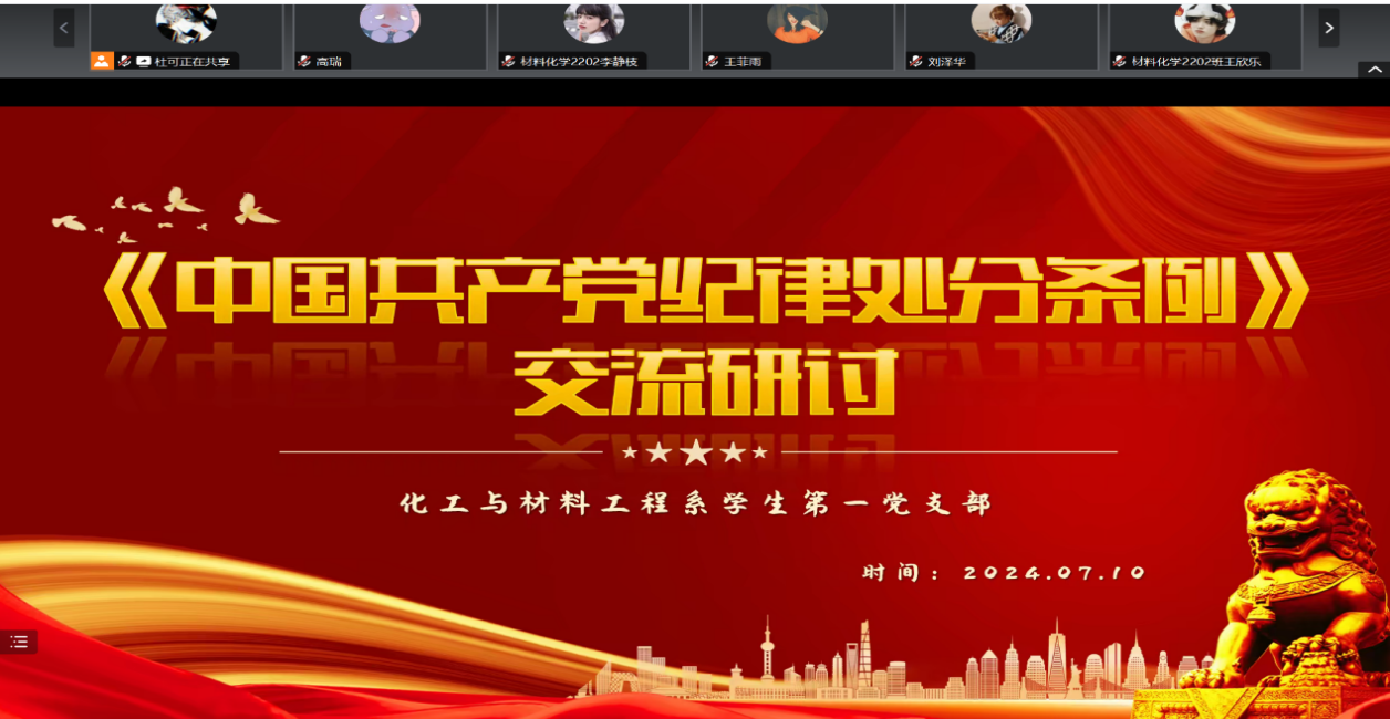 随着我国改革开放和社会主义建设的深入推进,党面临的形势任务发生了深刻变化。《条例》的修订出台,对于严肃党内政治生活,纯洁党的队伍,保持党的先进性和纯洁性,具有重要的现实意义。特此,太阳集团tyc138学生第一党支部于2024年7月10日17:00在线上开展了《中国共产党纪律处分条例》交流学习。参与此次会议的有学生第一党支部全体党员,此次会议由支部书记王莹主持。