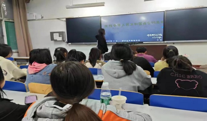 为庆祝中华人民共和国成立75周年,强化爱国主义教育,激励广大青年学生坚定理想信念,增强国家认同与民族自豪感,增强团组织的凝聚力,促进青年的自我教育与成长,特此,我系于10月17日在1A-305教室开展了“庆祝中华人民共和国成立75周年”主题团日活动。