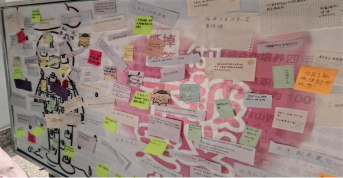 此外,活动现场还设置了留言墙,同学们纷纷写下自己对拒绝标签的感悟,为陌生人写下鼓励与意见的便利贴。一句句真挚的话语,饱含着大家渴望摆脱束缚、自由成长的心声。这次活动让他们重新审视自己,不再被外界的看法左右,要勇敢地去探索未知的自己,勇敢地做自己,接纳自己,做不被定义的自己。
