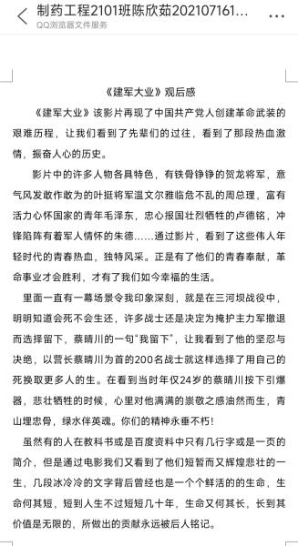 本次活动,通过展示优秀的文章作品,积极宣导社会正能量,让同学们从红色书籍和电影中感受革命的不易和支撑革命先辈的信仰。在同学们的笔下,用富有多样性的方式表达了对革命精神的崇敬,也相信顺应时代潮流,我们当代大学生也能够认真学习并且为祖国建设付出一份力量。