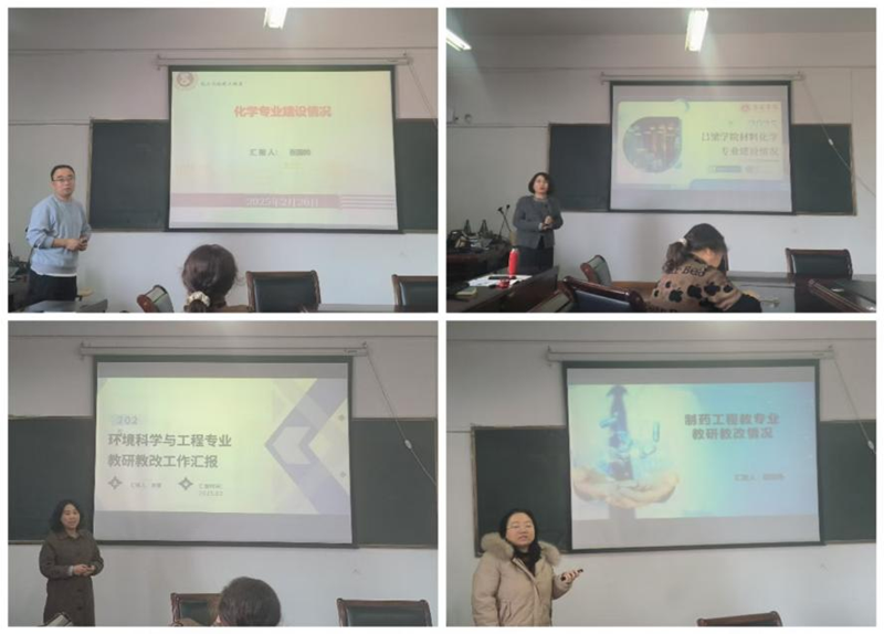 系部化学、材料化学、冶金工程、化学工程与工艺、制药工程、环境科学与工程6个专业负责人对照审核评估体系,对各专业需求导向、人才培养目标、毕业要求、课程建设、产学研合作、质量保障与评价等方面进行了汇报。