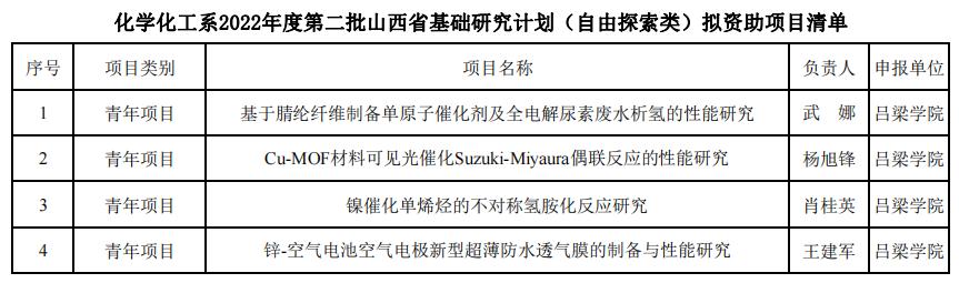 我系4位博士的项目获得2022年度第二批山西省基础研究计划(自由探索类)资助立项
