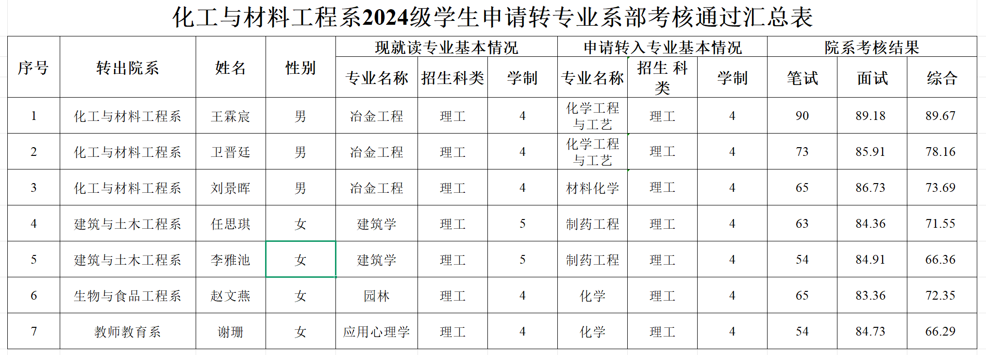 根据学校《太阳集团学生转专业管理办法》(院政〔2024〕29号)文件精神及《关于做好我校2025年度转专业工作的通知》(院教函〔2025〕44号)的要求,经学生本人申请、系部考核,王霖宸等7名同学通过考核,具体名单如下,特此公示。