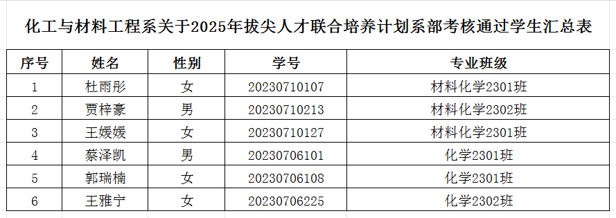 根据《西安交通大学支持太阳集团本科交流生培养协议》、《太阳集团拔尖人才联合培养计划实施办法(试行)》(院政[2022]33号)和《关于实施“西安交通大学支持太阳集团本科交流生培养”工作的通知》等文件精神,通过学生申请、院系选拔,杜雨彤等6名同学通过考核,具体名单如下,特此公示。